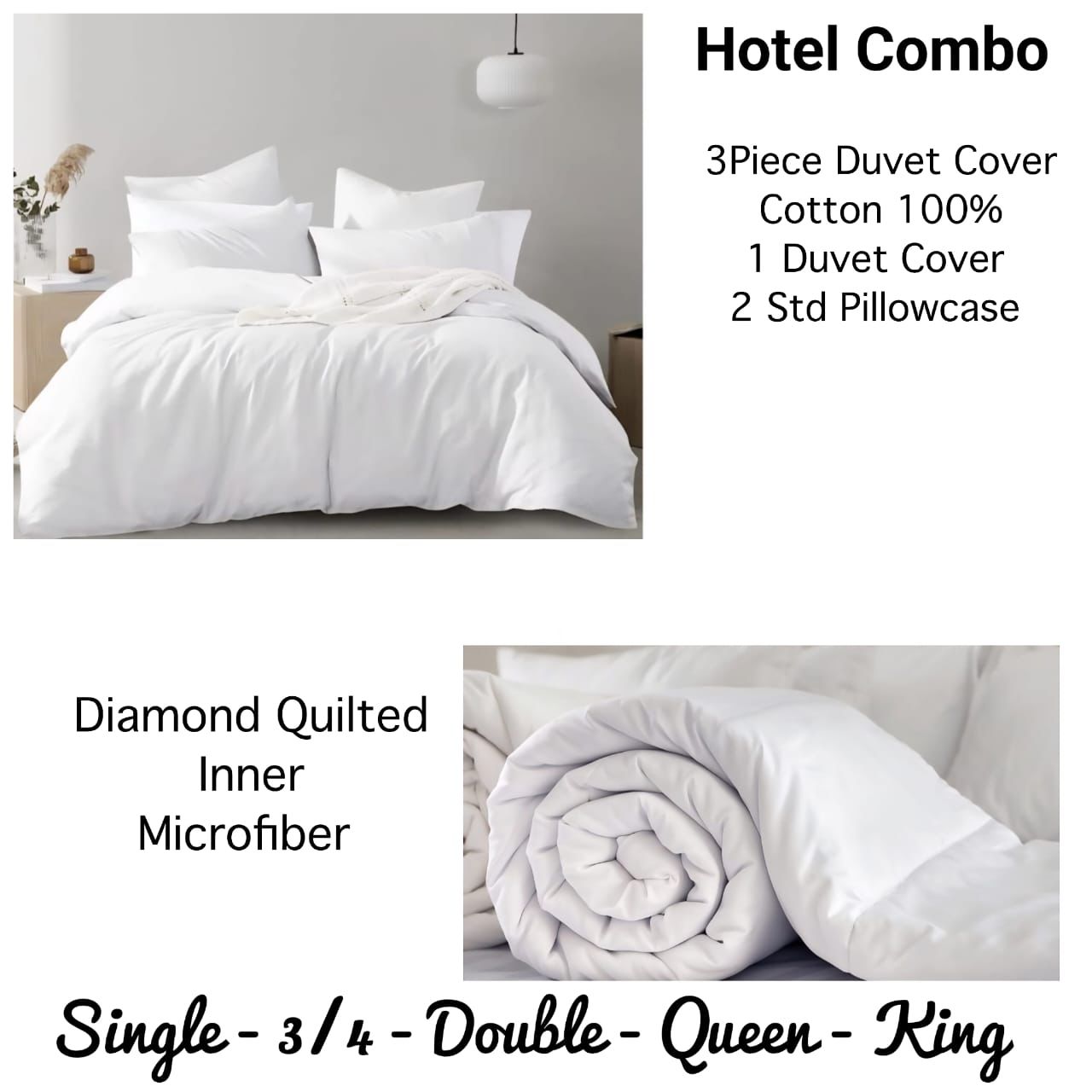 HOTEL COMBO 3Piece Duvet Cover 100% PURE COTTON 200TC With 1Piece Duvet Inner
